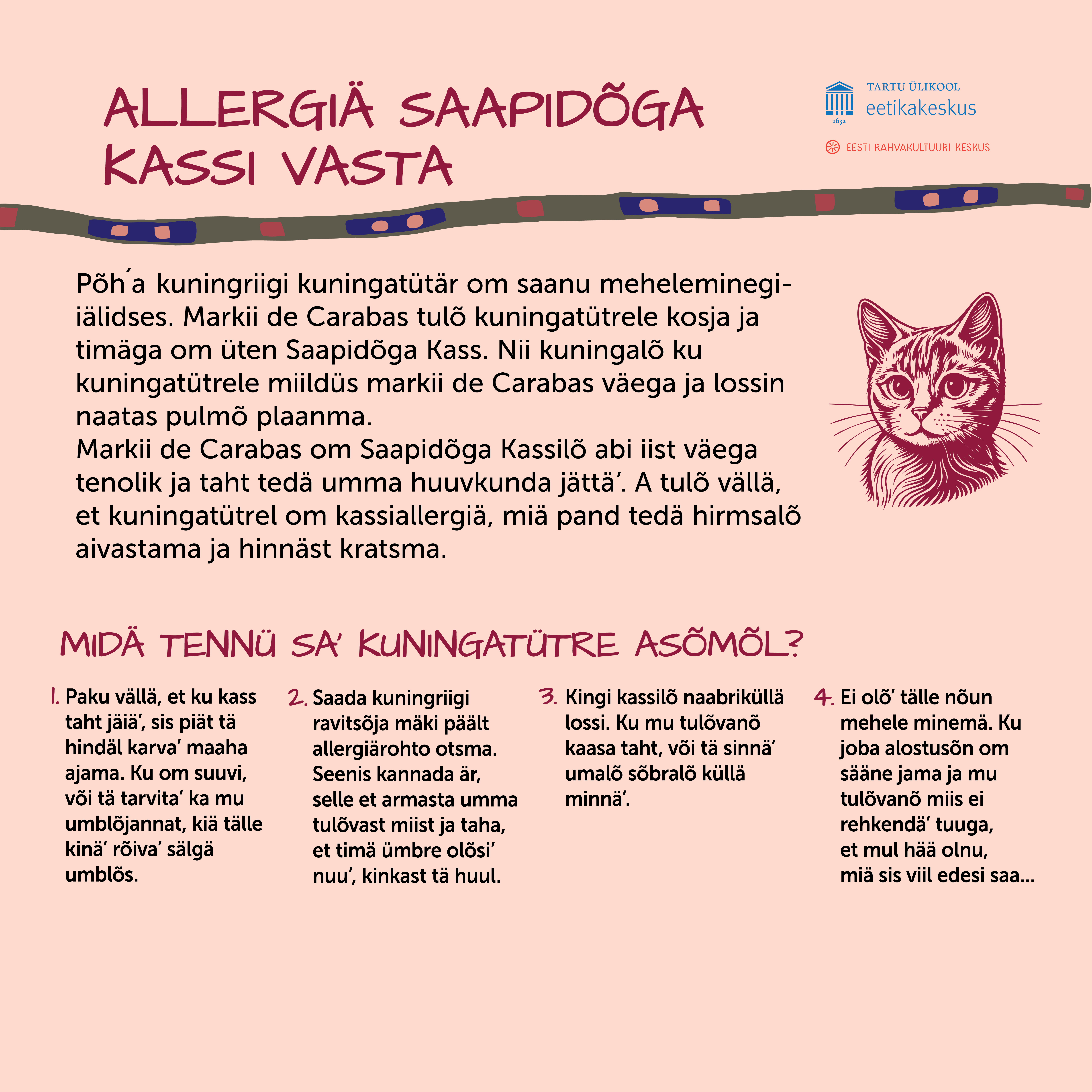 Seo om väärtüisi mäng. Loe’ lugu läbi ja mõtlõ’, määntse variandi sa’ esi’ valinu’. Kõnõlõ’ tõisilõ, mille sa niimuudu valit. Kullõ’ hoolõga, midä tõsõ’ ütlese’. Naaku-ui vasta vaidlõma vai naarma – egäl inemisel om õigus arvada’ õkva nii, nigu timä taht. Ku sa saa-ai häste arvo, sis küsü’ seletüst. Hää olnu’, ku kõik joudnu’ mängo lõpus üte meele pääle, a tuu üle tohe-ei hääletust tetä’. Ku üte meele pääle siski ei jovva’, om tähtsä vällä märki’, et inemise’ ommaki esi’muudu ja mi ei piäki kõik üttemuudu mõtlõma, a luku tulõ pitä’ tõistmuudu arvajist kah.