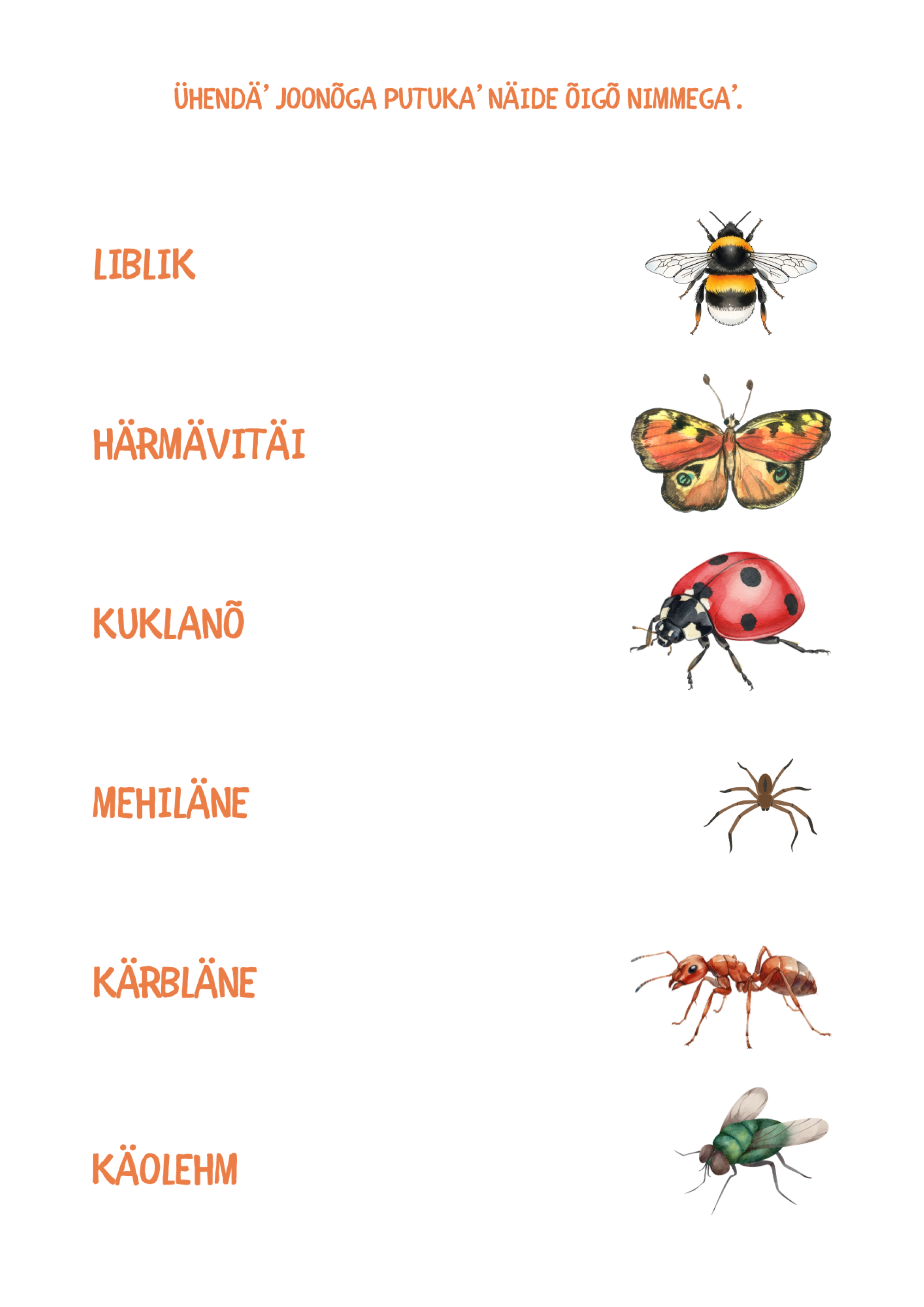 Tüüleht koh saa oppi eläjidõ, puiõ ni putukidõ nimmõ’.