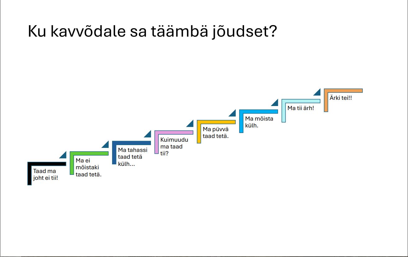 Trepp avitas koolilatsõl märgota’, ku kavvõdalõ tä om mändsegi protsessiga jõudnu. Taad saa pruuki’ egätsugumaidsi tegemiisi man ja sakõstõ. Kõgõ tähtsämba’ astme’ om ekraani pääl halvaste nätä, alla laadit failin om kõik iloste oleman.