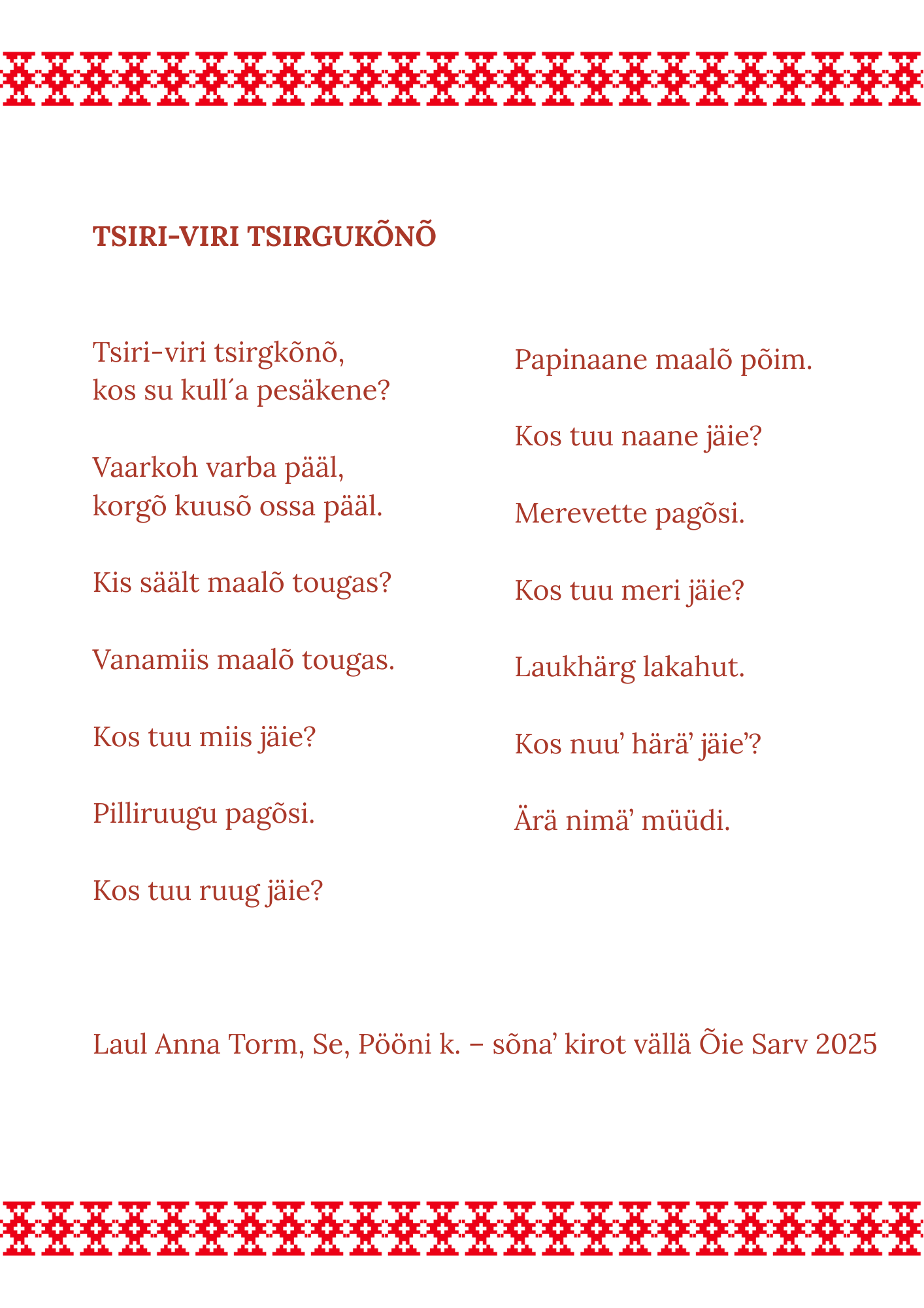 Laul “Tsiiri-liiri tsirgokõnõ”