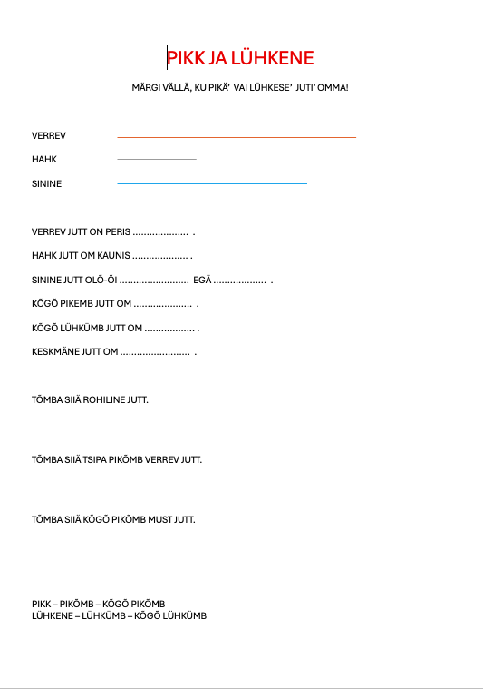 Juttõ võrdlõminõ pikkusõ perrä. Avida’ latsil tähele panda’, et sõna jutt tähendüs muutus, ku taad pruuki pehmehüsega (jutt - jutu ja jutt - juti).