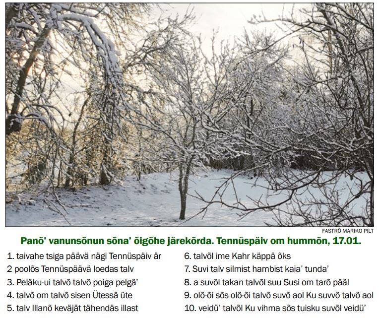 Vannosõnno sõna’ omma’ segämini lännü’. Säe’ nuu’ kõrda.